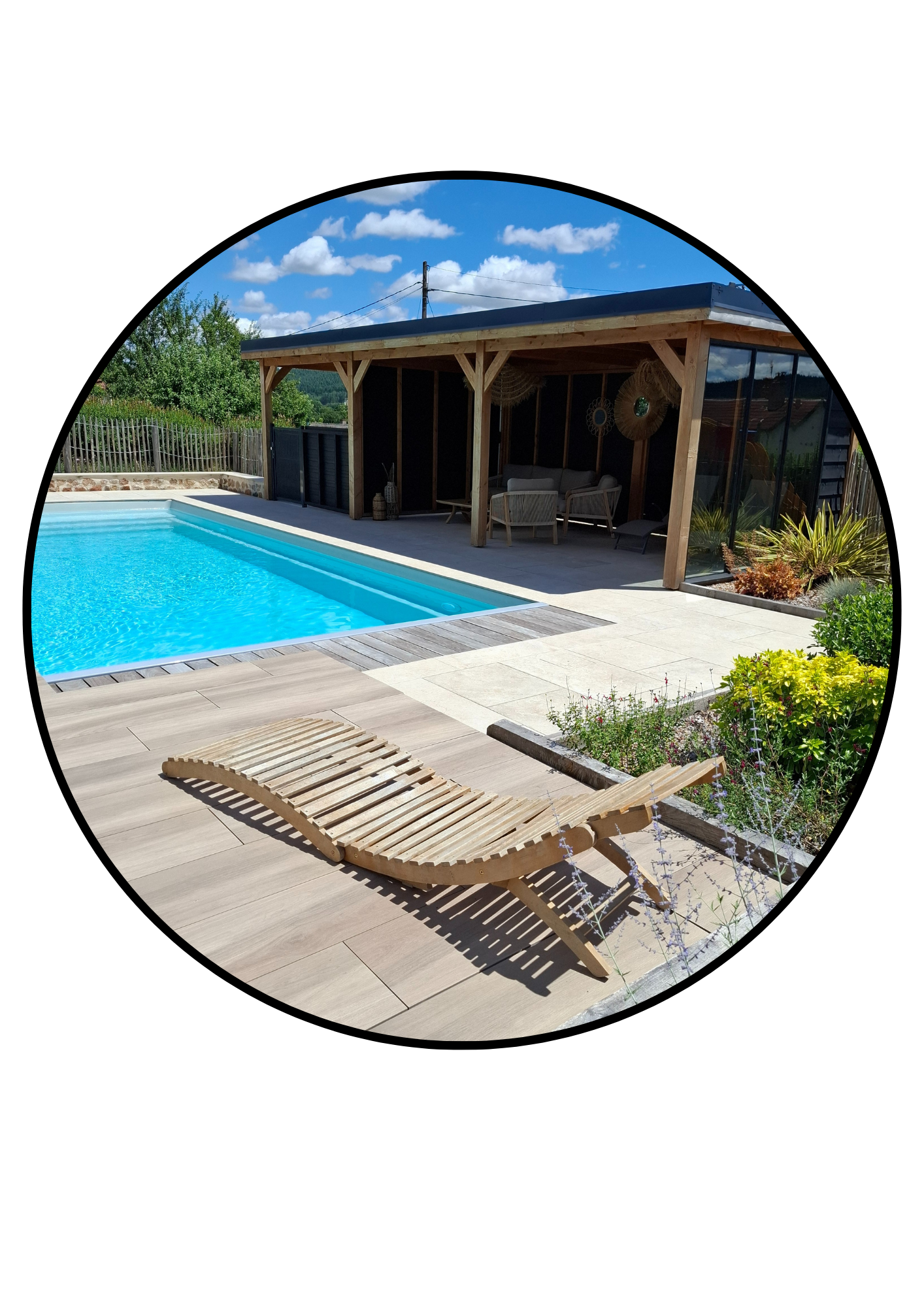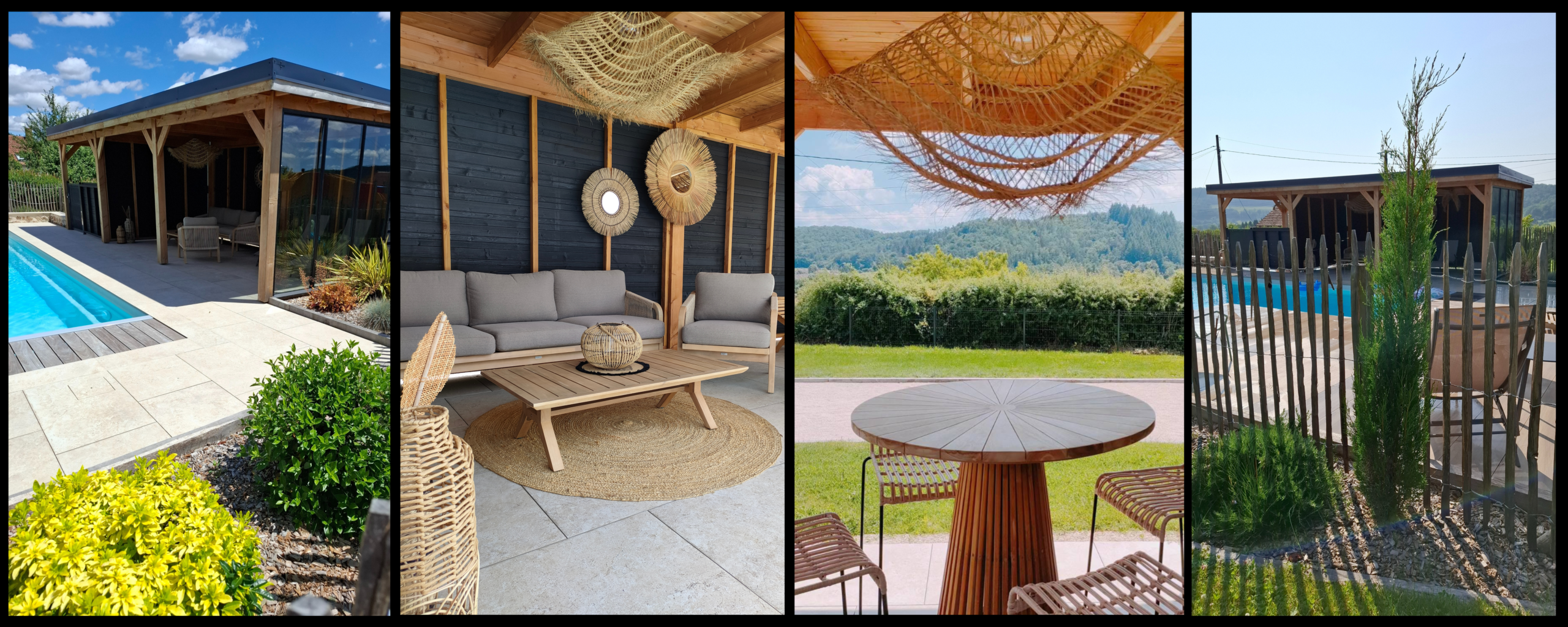 La pergola vous permettra de vous reposer dans le salon ou de profiter d’un apéritif avec sa table haute et ses chaises de bar. Faisant 9 par 3 m vous aurez tout l’espace nécessaire.